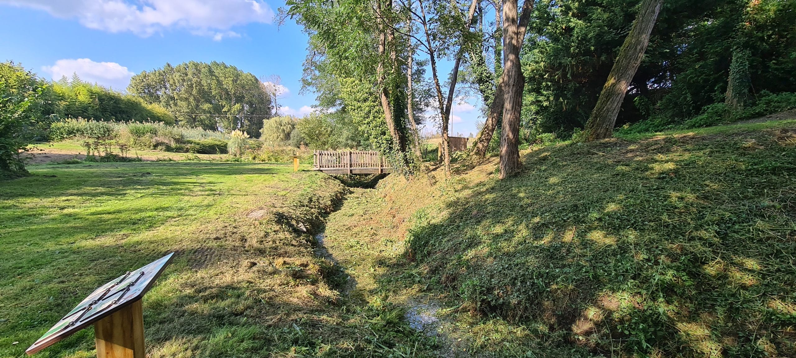 Un réseau de fossés est présent sur le site de la zone humide. Ceux—ci se trouve à proximité de la fontaine et des aménagements urbains (city-stade, aire de jeux, …).et se jettent dans la Vézanne. Ce réseau était fortement végétalisé et se comblait jour après jour. Une fauche et un retrait de la matière accumulée au fond des fossés a été réalisée afin de permettre une libre circulation de l’eau.